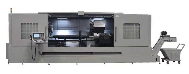 ■机床采用斜床身布局,主轴箱固定于床身左端,编程控制的副主轴置于床身右端,两个刀架分别配置在床身两侧。